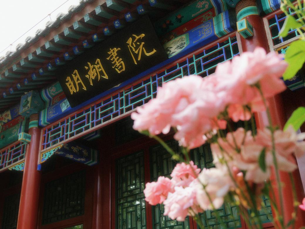 明湖書院匾額于2025年5月打造完成。明湖是校園中心景觀,從高處俯視湖面,兩片湖面形似“明”字。四合院位于明湖北側,古香古色建筑與明湖遙相呼應,讓每一位駐足觀賞的師生都沉醉在這寧靜的氛圍之中。四合院前廳取名“明湖書院”,既有教育行業(yè)傳承之意,又與周圍環(huán)境和諧共生。