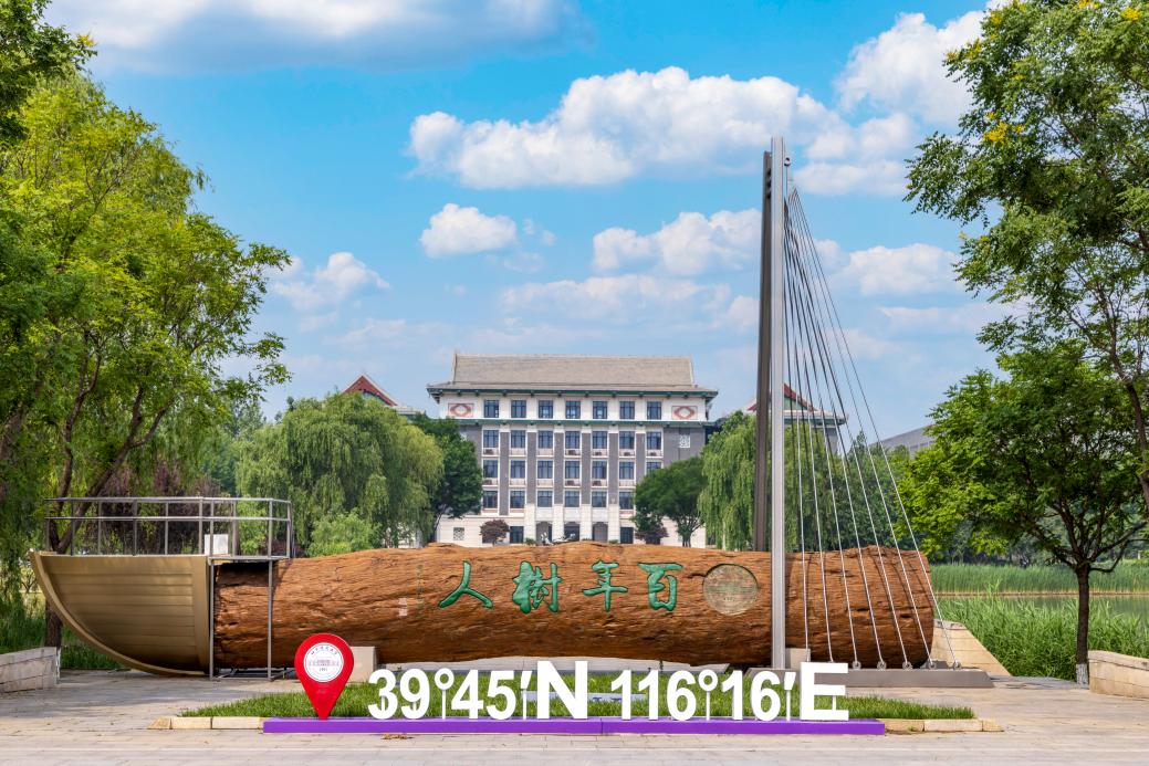 “北建大‘百年樹人號’揚帆起航”文化景觀于2025年1月落成。作品由城市公共藝術家劉恒甫先生創(chuàng)作,將帆船的形態(tài)、線條、運動軌跡等元素融入景觀設計之中,營造出帆船即將啟航的動態(tài)氛圍。船體原木由北京木業(yè)協(xié)會捐贈,木長10.3米,中間直徑1.76米,重25噸。原木上銘刻的“百年樹人”由我校1952級校友愛新覺羅·啟驤題寫,比喻教育乃國家培養(yǎng)人才的千秋大業(yè)。景觀整體以金屬與木制相結合,呈現(xiàn)出古樸而富有質感的效果,與周圍環(huán)境融為一體。師生可登上“船頭”俯瞰周邊的水域風光,感受“揚帆起航”的壯志豪情。